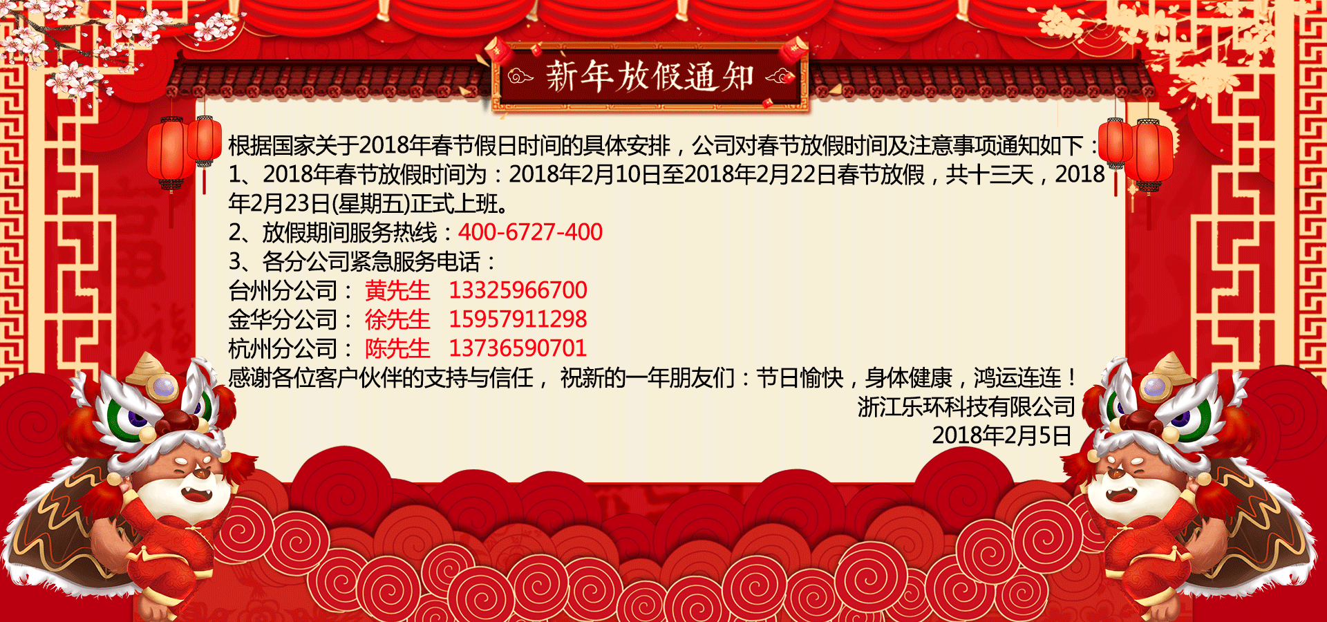 樂環(huán)放假通知