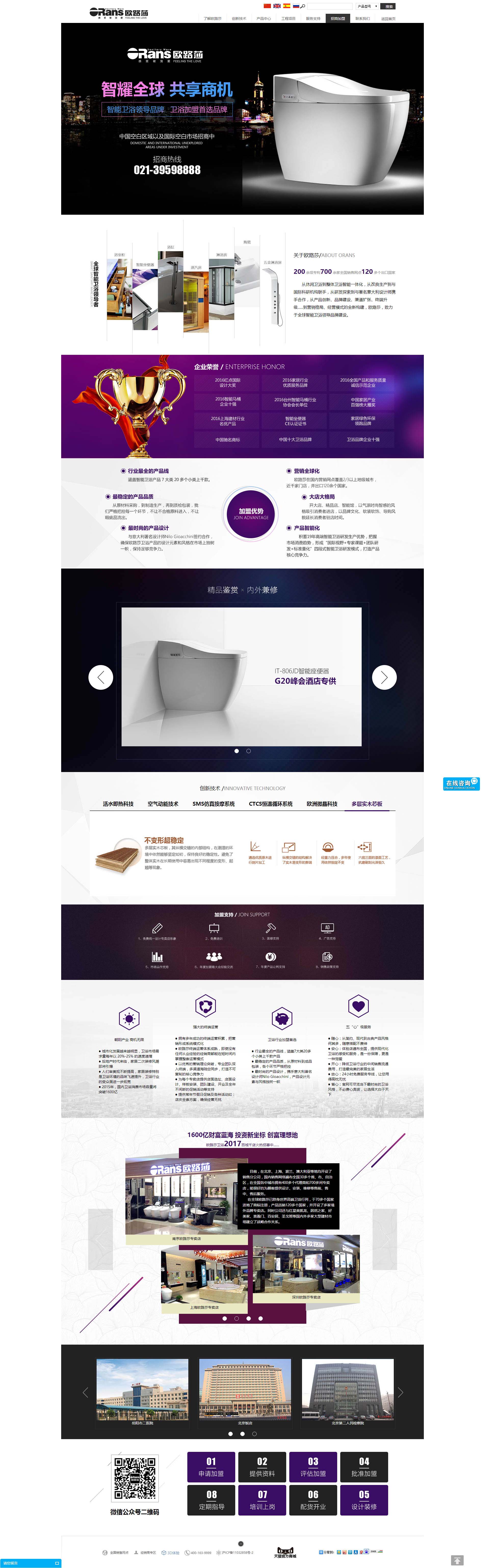歐路莎衛(wèi)浴始創(chuàng)于1998年,是一家專注于智能衛(wèi)浴研產(chǎn)銷的科技型自主品牌企業(yè),是中國最早從事整體衛(wèi)浴智能化打造的品牌,先后成為按摩浴缸、桑拿房、淋浴房、智能座便器行業(yè)標(biāo)準(zhǔn)的起草制定單位,獲得“中國馳名商標(biāo)”、“中國十大衛(wèi)浴品牌”、“衛(wèi)浴品牌企業(yè)十強(qiáng)”等百余項(xiàng)殊榮,擁有各種產(chǎn)品專利200余項(xiàng),全國銷售網(wǎng)點(diǎn)700余家,出口全球120多個(gè)國家,并一直堅(jiān)持走自主研發(fā)、品牌創(chuàng)新發(fā)展的道路。