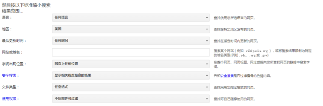 網(wǎng)站或域名:在這里輸入網(wǎng)址或域名,比如說(shuō)輸入www.google.com,那么最后出現(xiàn)的所有搜索結(jié)果都是基于谷歌網(wǎng)站的,這樣可以讓我們的搜索結(jié)果更加精確。