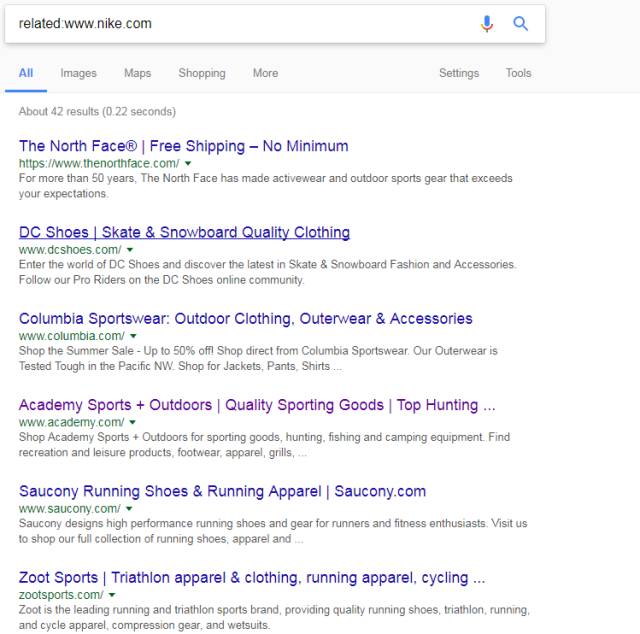 找到目標(biāo)的的網(wǎng)站后可以使用related: 尋找類(lèi)似網(wǎng)站。