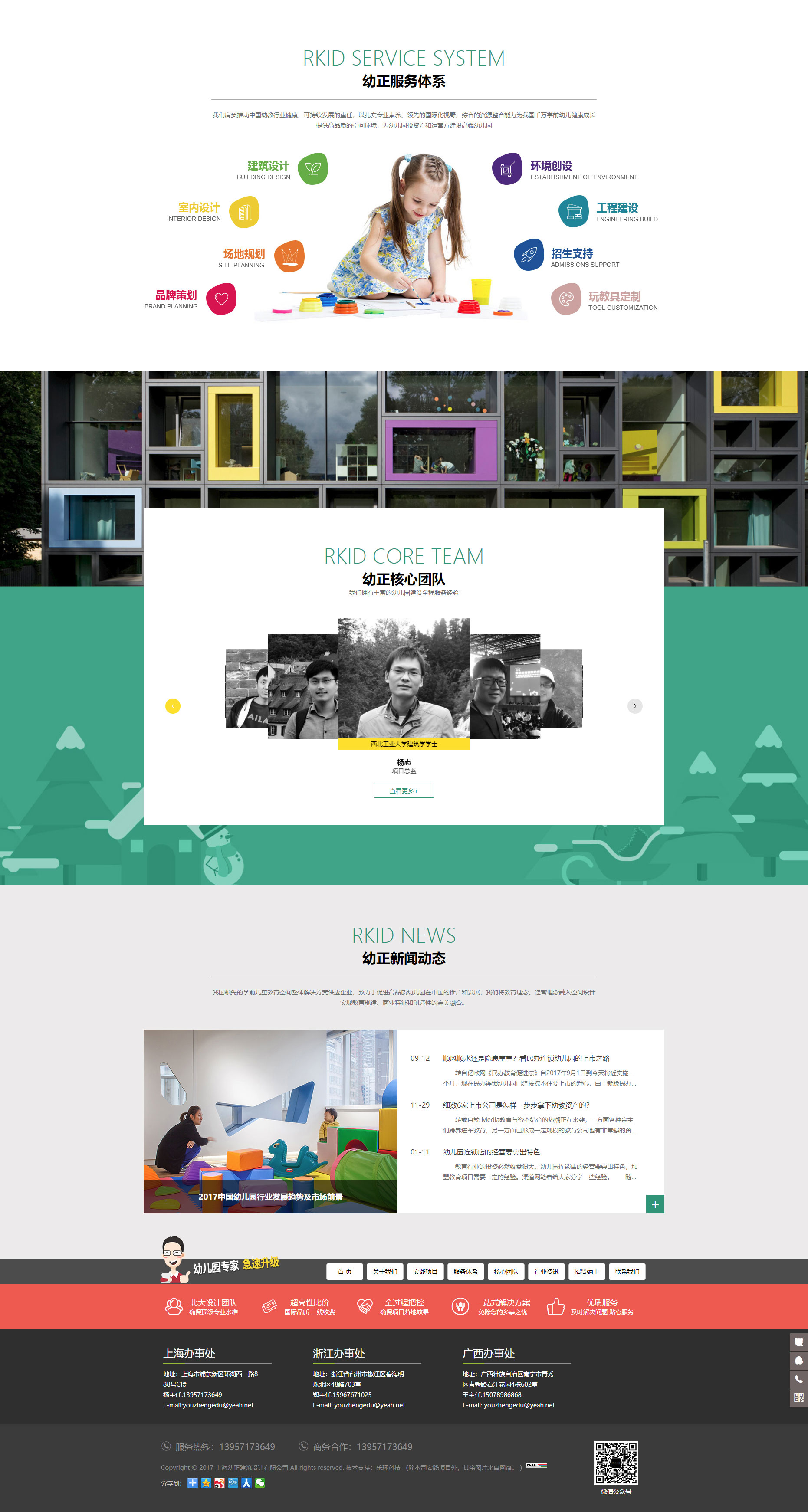 我們擁有豐富的幼兒園建設(shè)全程服務(wù)經(jīng)驗(yàn),擁有一支由建筑師、室內(nèi)設(shè)計(jì)師、景觀設(shè)計(jì)師、平面設(shè)計(jì)師和資深幼教專家組成的跨領(lǐng)域的一流服務(wù)團(tuán)隊(duì)。我們肩負(fù)推動中國幼教行業(yè)健康、可持續(xù)發(fā)展的重任,以扎實(shí)專業(yè)素養(yǎng)、領(lǐng)先的國際化視野、綜合的資源整合能力為我國千萬學(xué)前幼兒健康成長提供高品質(zhì)的空間環(huán)境,為幼兒園投資方和運(yùn)營方建設(shè)高端幼兒園,樹立品牌形象提供高性價比的全過程、一站式的專業(yè)服務(wù)。