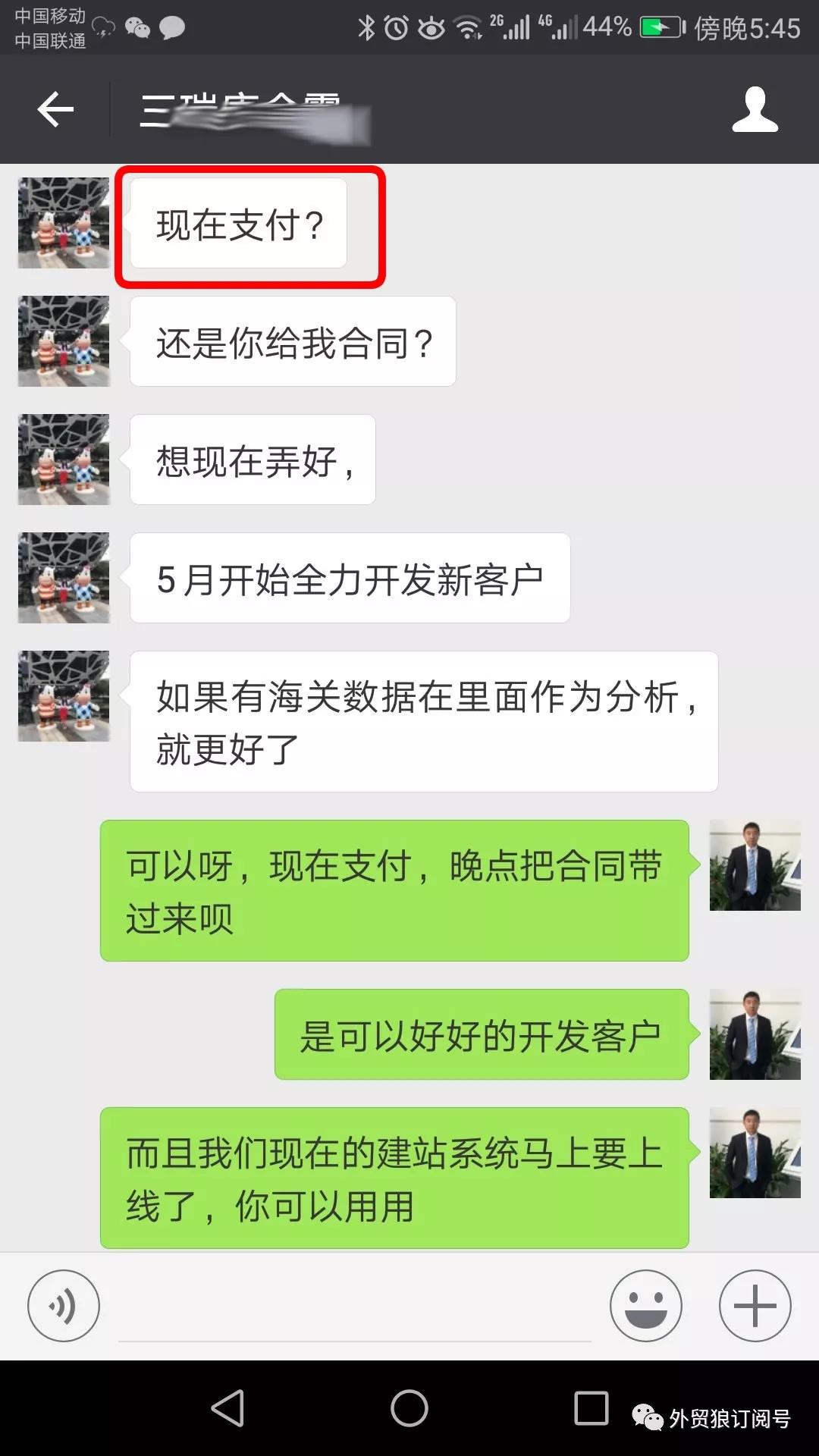 外貿(mào)狼是一款工具,的的確確非常高效獲取精準(zhǔn)線索。要發(fā)揮出他所有的價(jià)值,得結(jié)合外貿(mào)人的專業(yè)度和外貿(mào)知識。就如這個(gè)案例,如果連這套思路都沒有,很有可能就丟失了這個(gè)客戶,加油!感謝唐總信任,感謝直接網(wǎng)絡(luò)轉(zhuǎn)賬合作,現(xiàn)在合作外貿(mào)狼,總20個(gè)國家的建站系統(tǒng)哦!加油!