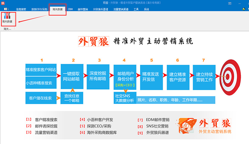 外貿(mào)狼,外貿(mào)人的秘密武器!讓您足不出戶,幫您找到目標(biāo)客戶的目標(biāo)負(fù)責(zé)人!直接找到老板找到采購,直接談生意!就這么神奇!